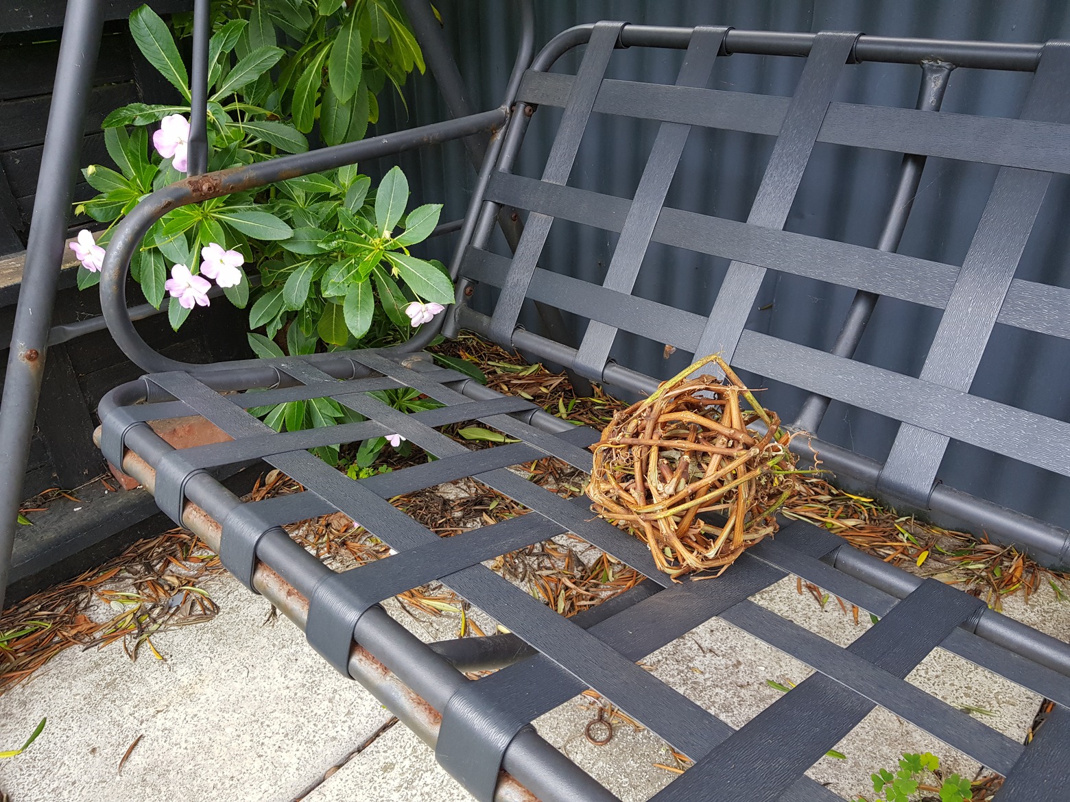 Pruning my grapevines. This is the first one. Will grow this ball with each vine I have here in Petone. I have propagated a very old vine first discovered in Rakaia when I lived there. It was growing at the local electrician’s grandmother’s house. She remembered eating the grapes as a child. It originated from the first French settlers that arrived in Akaroa, Banks Penninsula. They came to Rakaia, via the ferryman as there was no bridge back then, to swap these cuttings for grain seeds. I sent a sample of this vine to UCLA Davis for DNA testing. It came back as a nameless hybrid, so I was invited to name it. I call it the Helena vine. The Helena vine is early ripening, thin skinned, red grape prone to some hen and chickens due to it having Leaf Roll Virus 3. This is not a serious virus but does cause the leaves to turn red quite early in the season. Thankfully it is an early ripener so this doesn’t seem to affect the flavour of the grapes. They are delicious.